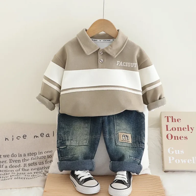 4,950د.جEnsemble enfant polo noir et blanc avec jean.