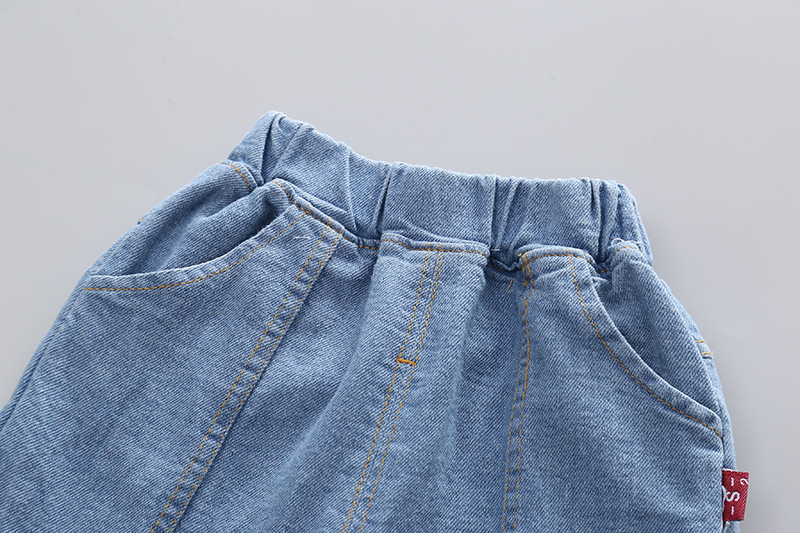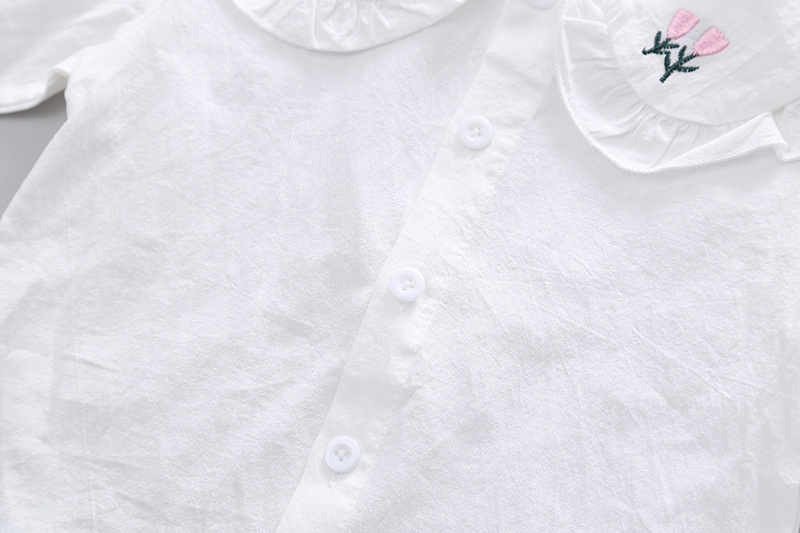 Un ensemble blanc et denim orné d’une jolie fleur, pour un look frais et élégant.