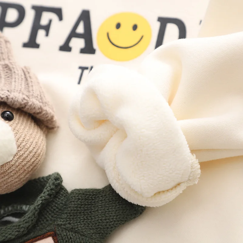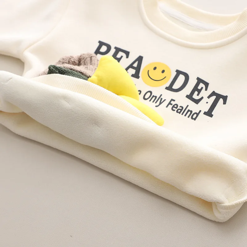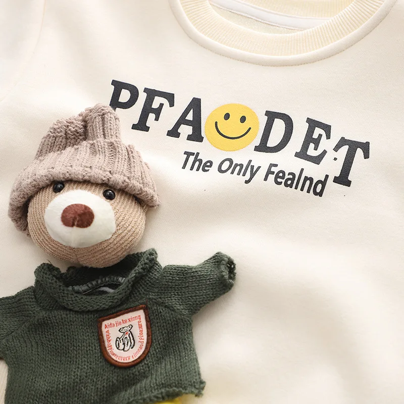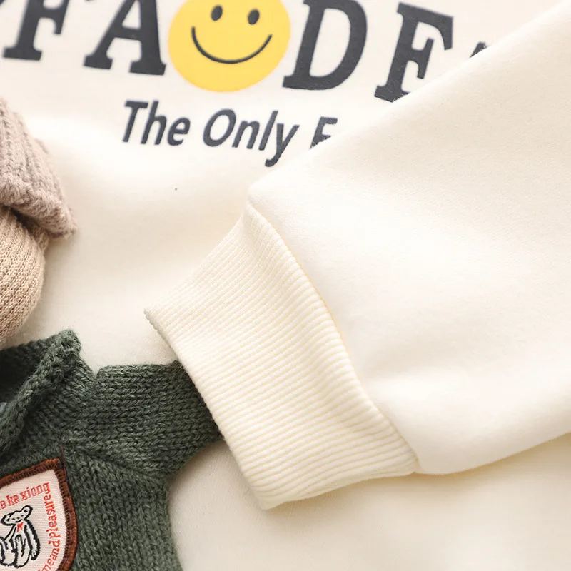 Un look adorable et pratique pour votre enfant ! Cet ensemble comprend un sweat beige imprimé amusant, un pantalon marron confortable et un bonnet assorti pour compléter le style. Parfait pour les journées fraîches, il associe confort et originalité. Une tenue qui fera le bonheur de votre petit garçon.