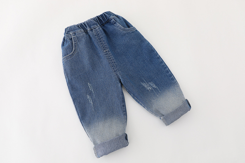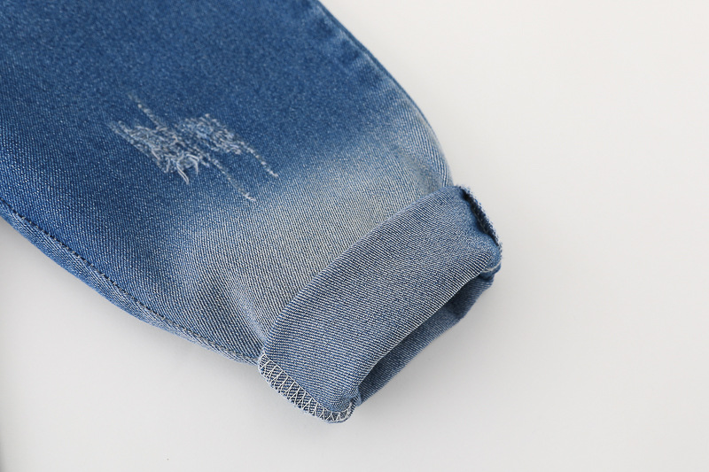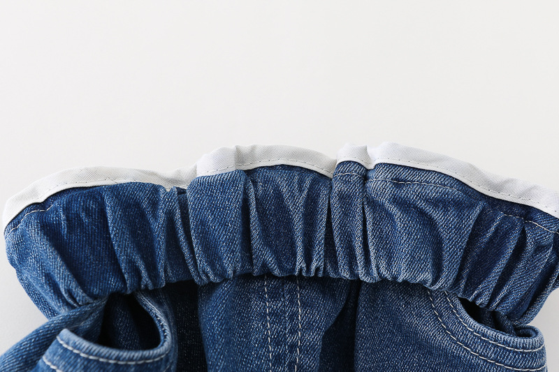 Tenue décontractée avec veste bicolore dessin animé et pantalon jean.